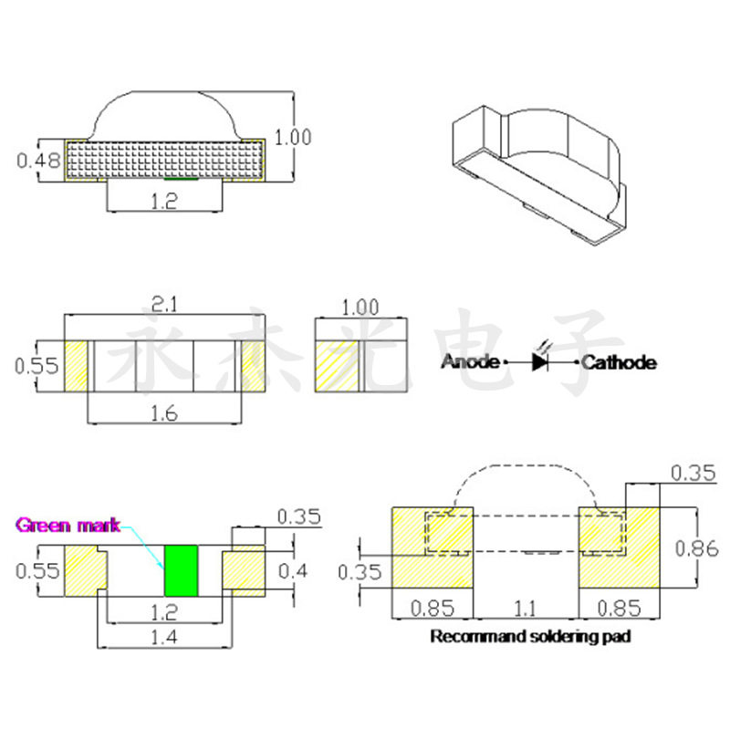 📚 LED灯珠 0805侧面翠绿 高亮 贴片LED 0802侧发光绿灯 绿色 纯绿光