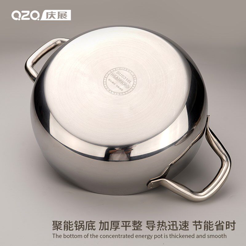 📚 庆展316L不锈钢火锅汤锅清汤锅鸳鸯锅加厚家用涮锅火锅盆火锅锅具
