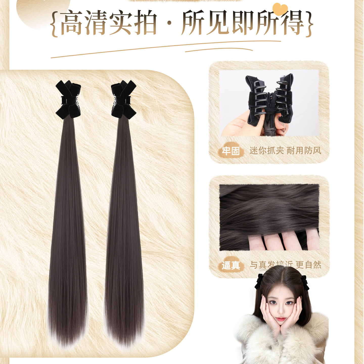 📚 假发辫子女新中式隐形蝴蝶结抓夹发束仿真麻花辫发饰自然马尾假发