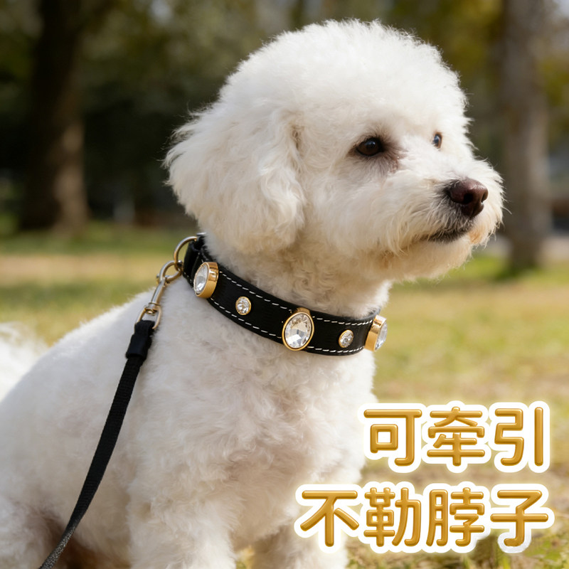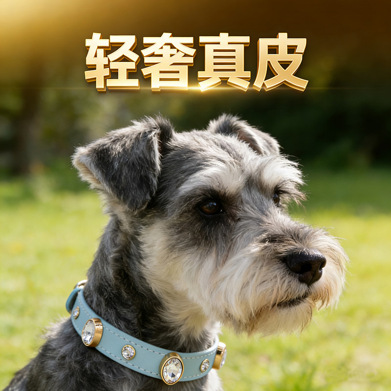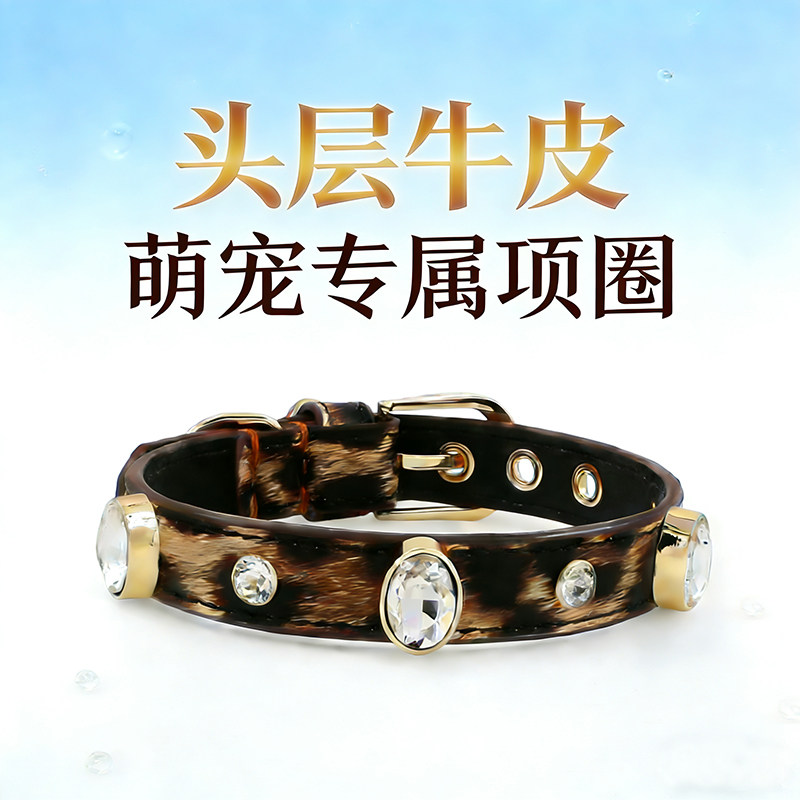 📚 阿奇尔 椭圆钻捷克钻真皮宠物项圈猫狗颈圈