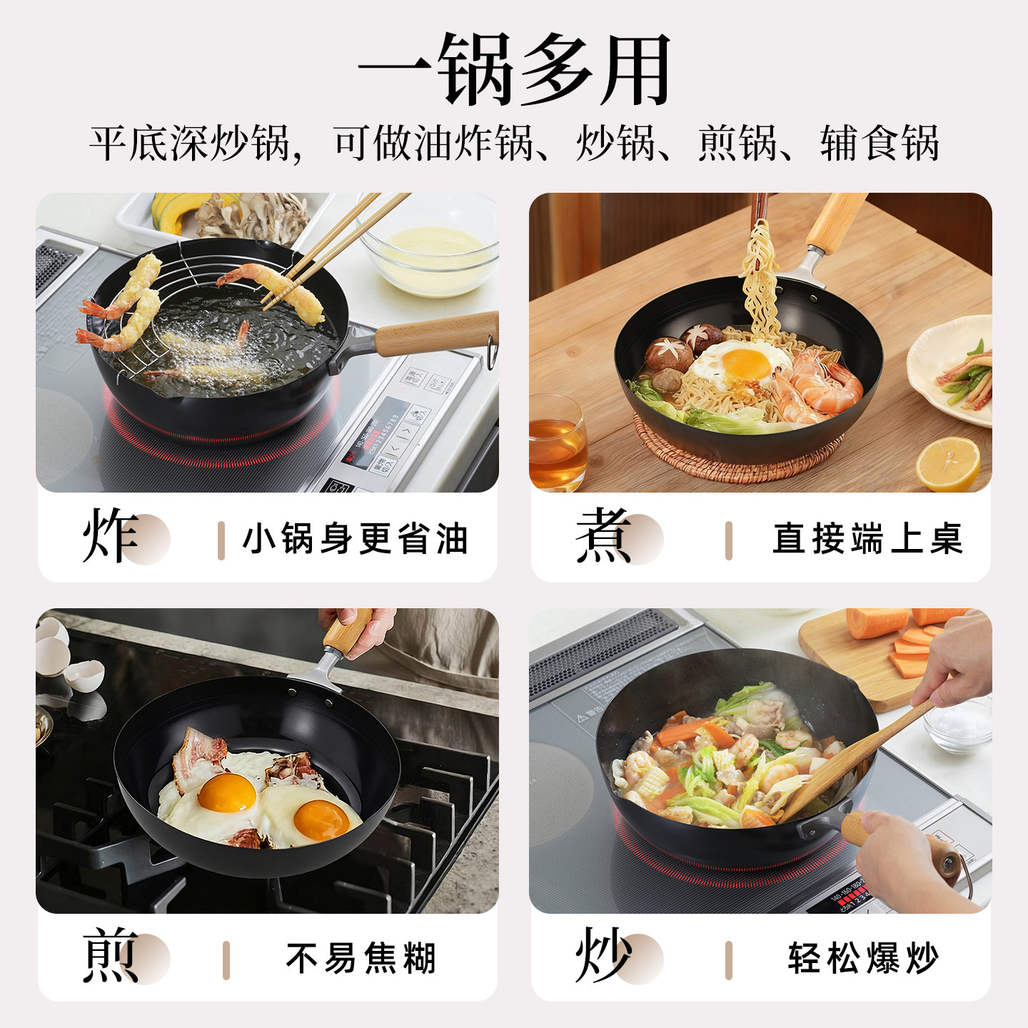 📚 吉川日本进口铁锅YOSHIKAWA不粘锅炒锅家用炒菜锅燃气灶用平底锅