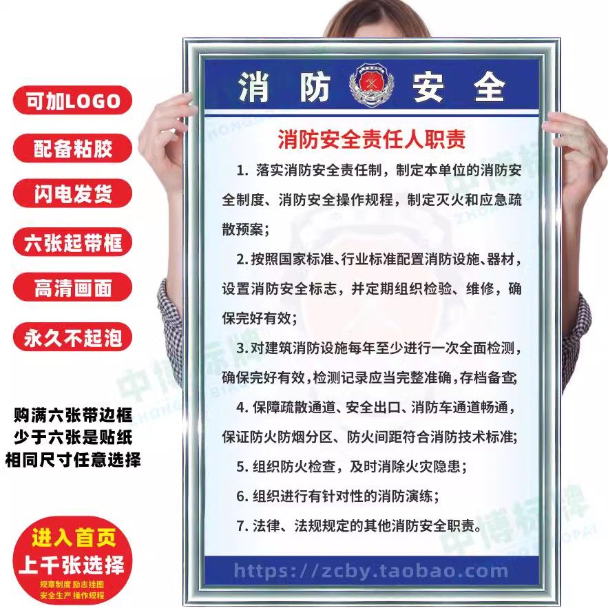08¥ CZ005 ABeYUlfRXl4¥ https://m.tb.cn/h.7FLLQsC 消防组织架构图 企业安全生产车间管理规章标语 警提指告标识示牌消防控制室检查安全责任规章制度牌定制上墙 --------------------- 【原售价】18元 【现售价】18元。