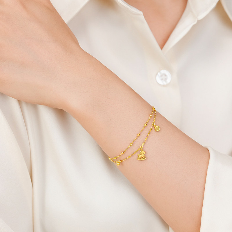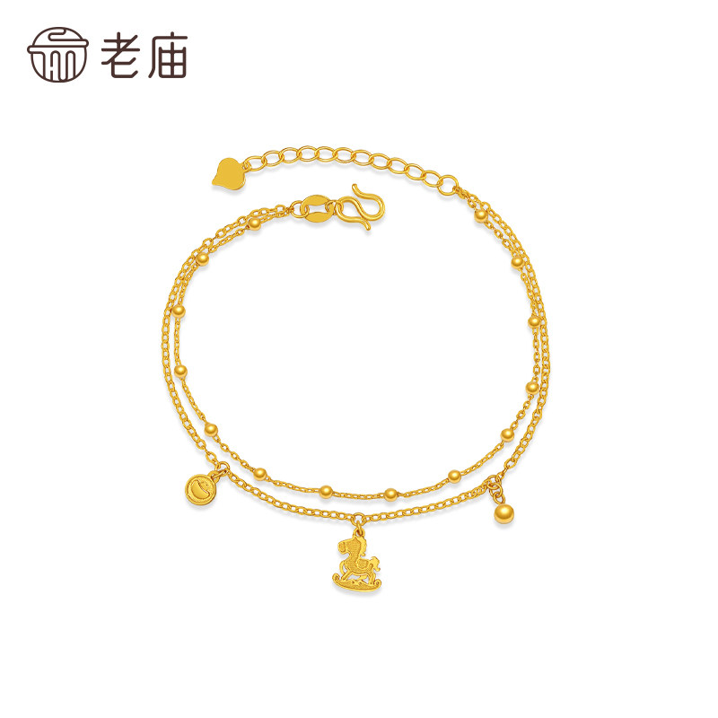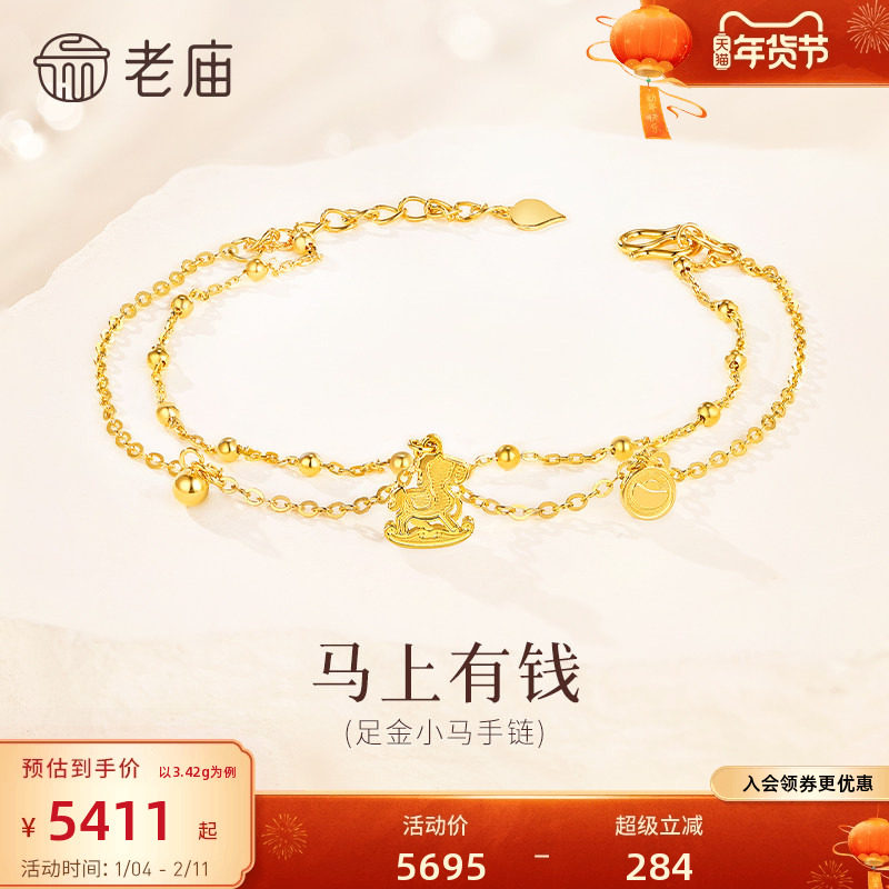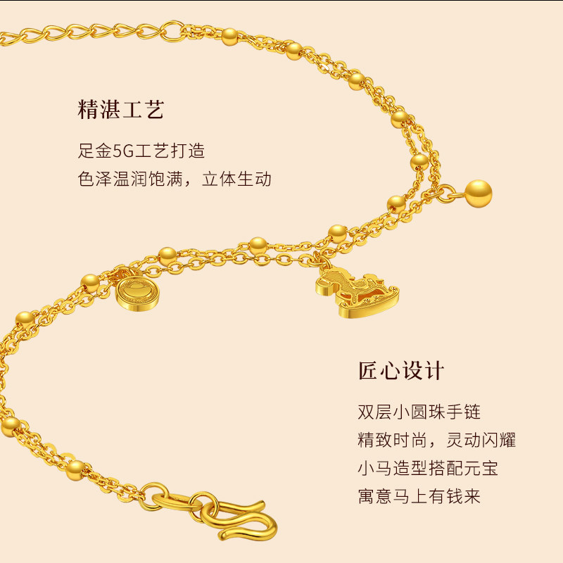 📚 老庙黄金足金小马手链马上有钱花5G精致小马生肖守护灵动时尚百搭