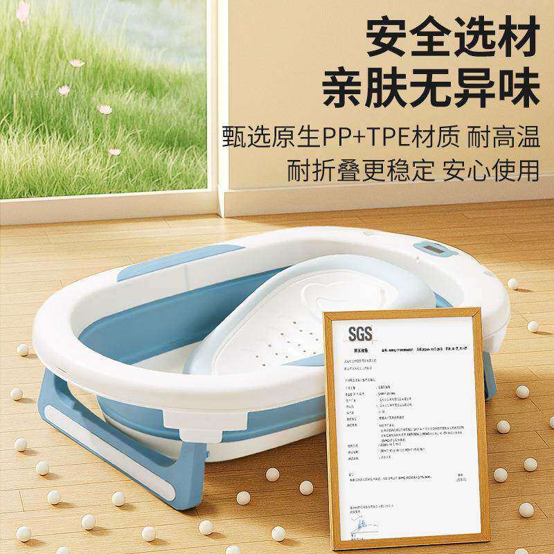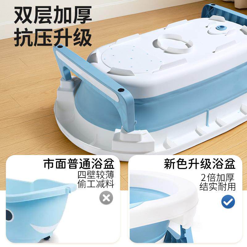 📚 宝宝洗澡盆可折叠沐浴桶带挂钩儿童家用可坐大号新生婴儿躺托浴盆