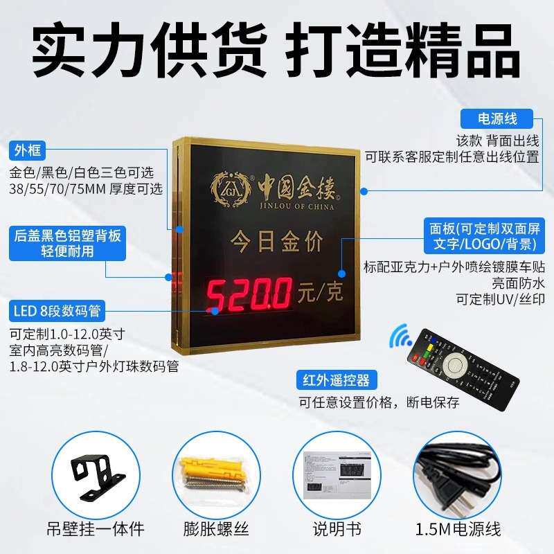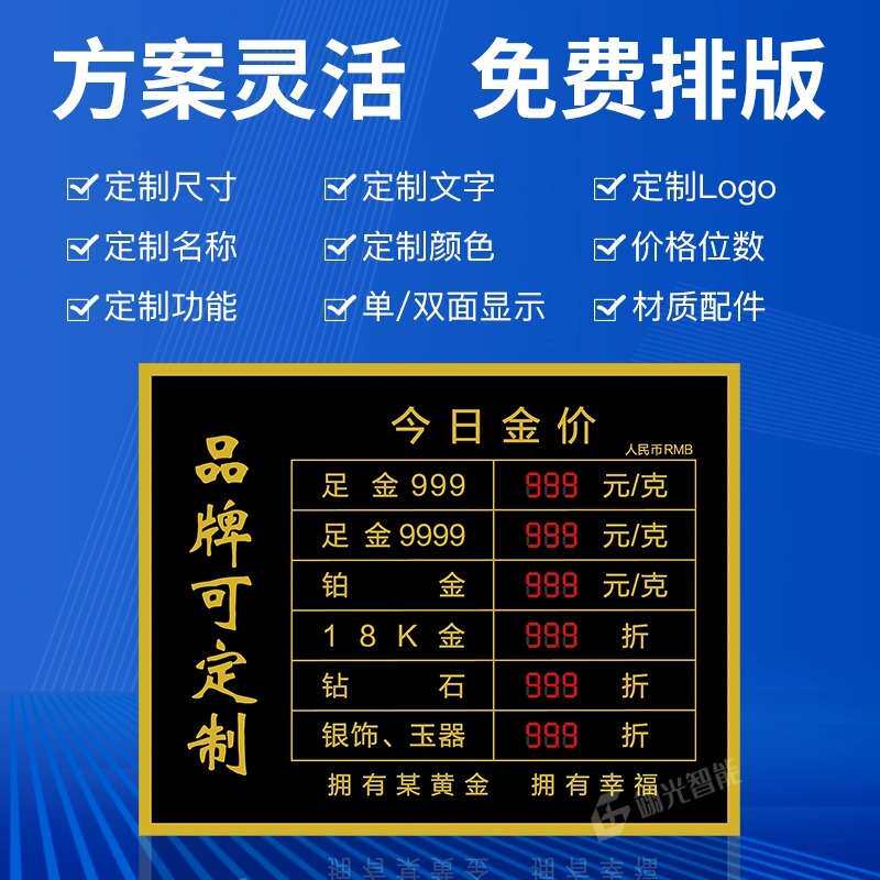 📚 电子金价牌LED显示屏黄金店银楼价目今日价格表展示看板数字时钟