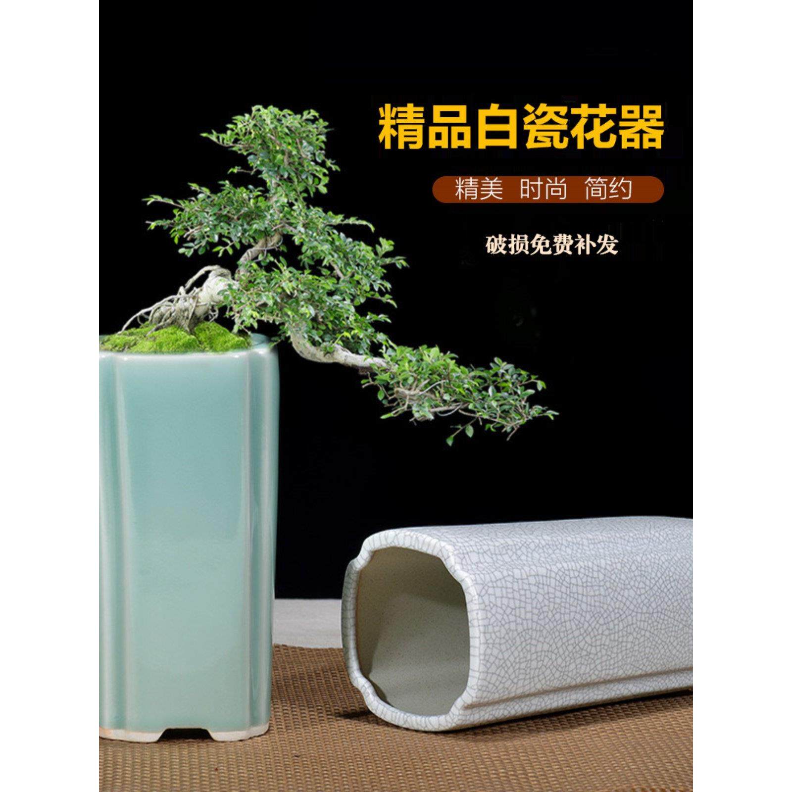 📚 紫砂花盆青瓷釉兰花盆高盆多肉盆栽四方六方形签筒悬崖盆景盆白色