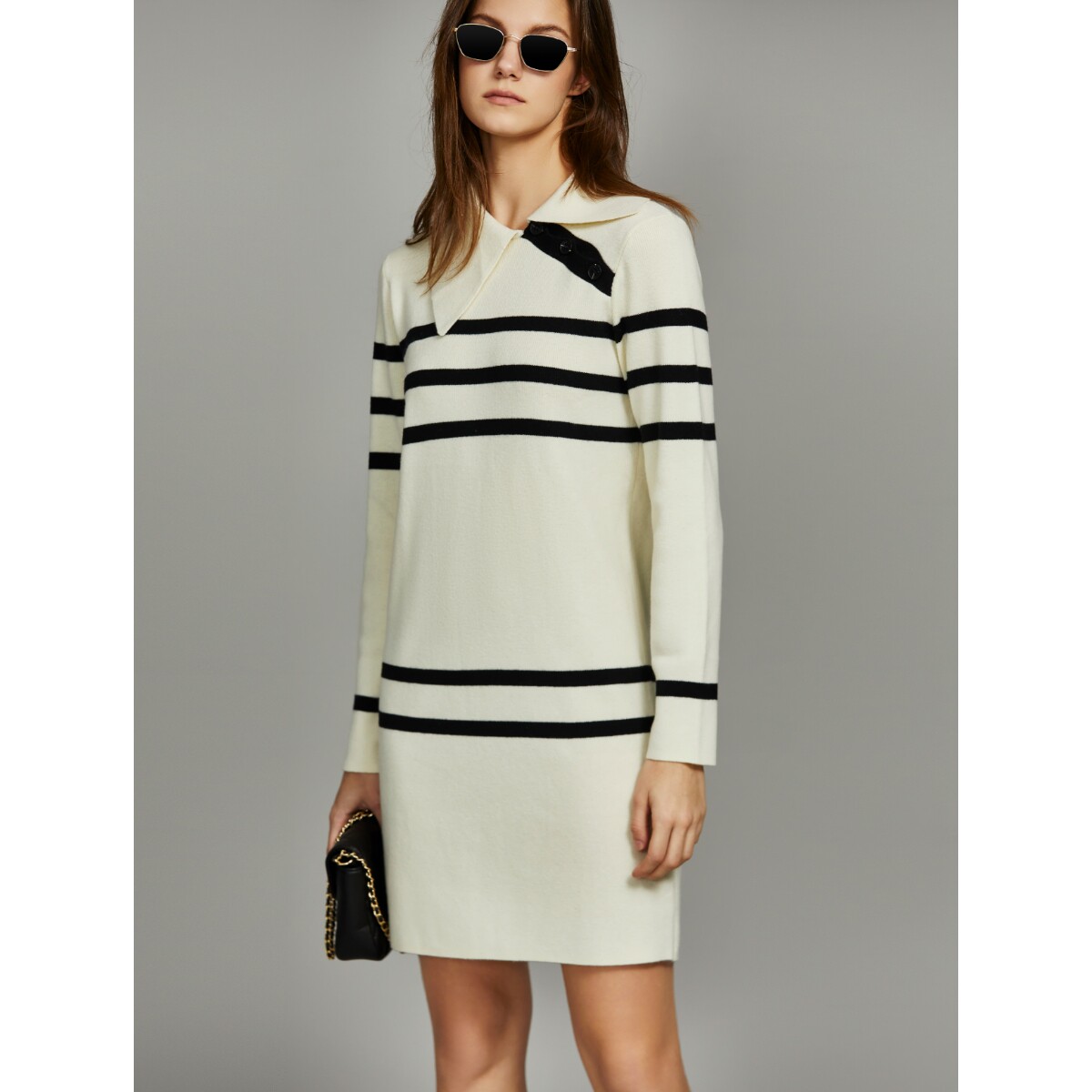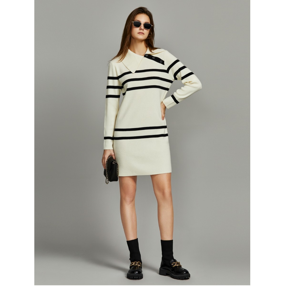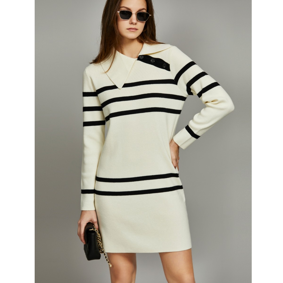 💥心动预警!ELLE绵羊毛混纺不规则条纹针织连衣裙,冬日新宠🔥
