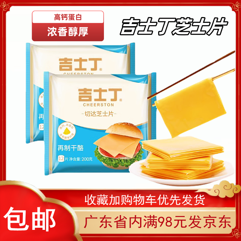 📚 吉士丁切达芝士片12片200g三明治汉堡火锅泡面专用奶酪棒烘焙原料