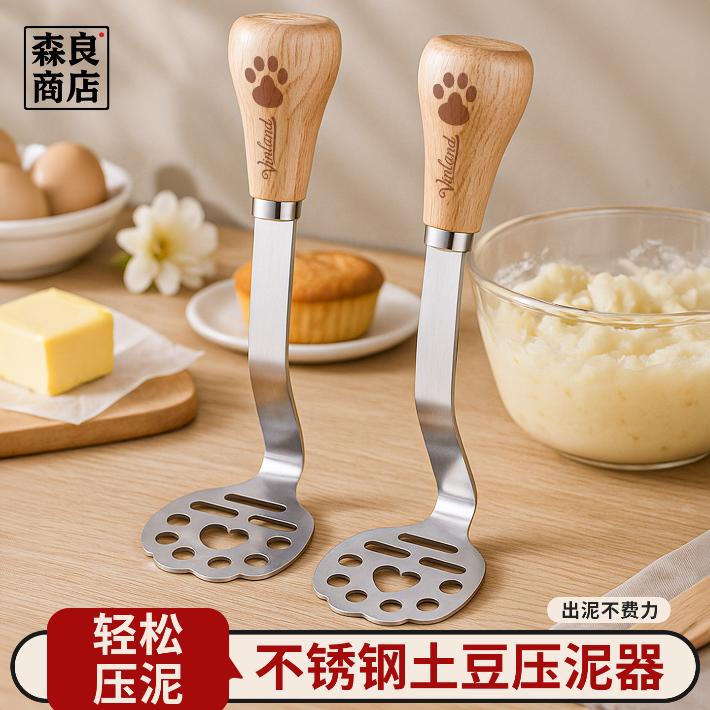 📚 日本压泥器按压土豆捣辅食神器婴儿不锈钢捣碎工具鸡蛋碾压棒压碎