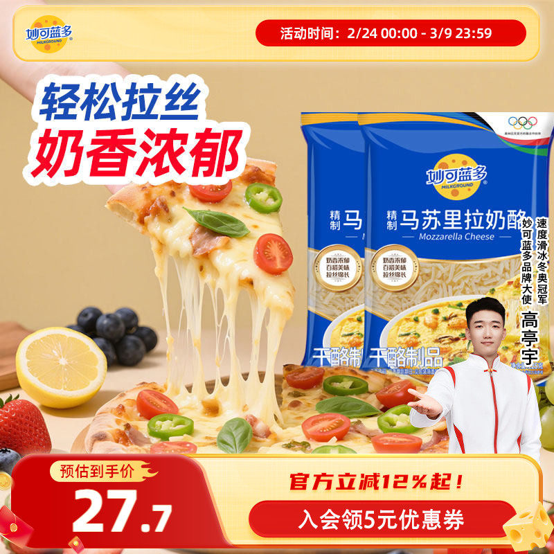 📚 妙可蓝多马苏里拉芝士碎披萨拉丝家用烘焙奶酪125g*3