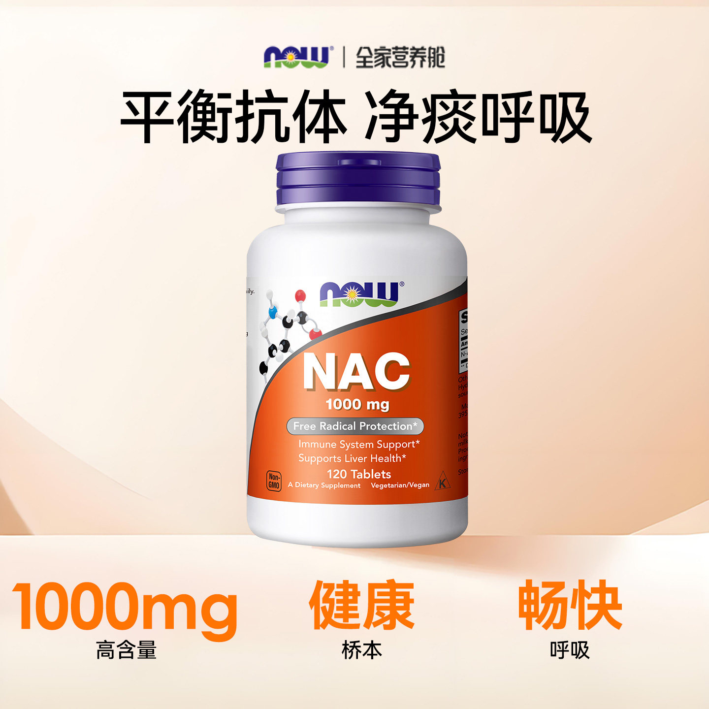📚 美国直邮】NOW诺奥N-乙酰半胱氨酸NAC桥本氏甲状抵氧补充剂1000mg