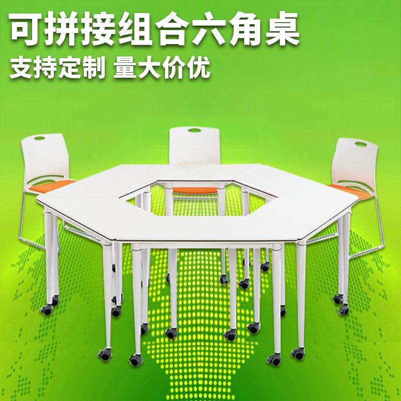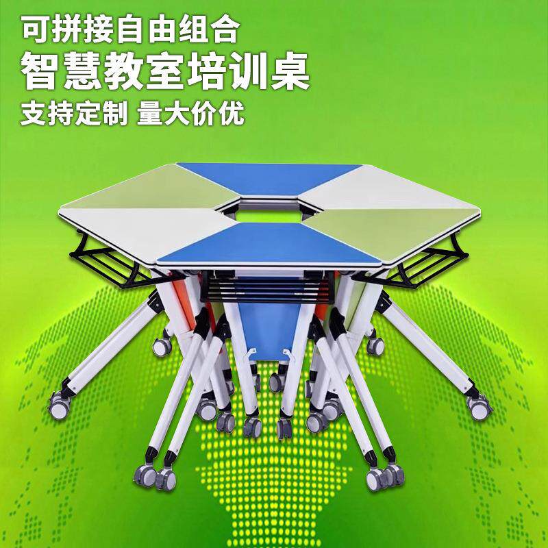 📚 学生智慧教室培训桌可拼接自由移动实验室课桌椅六角多边形电脑桌
