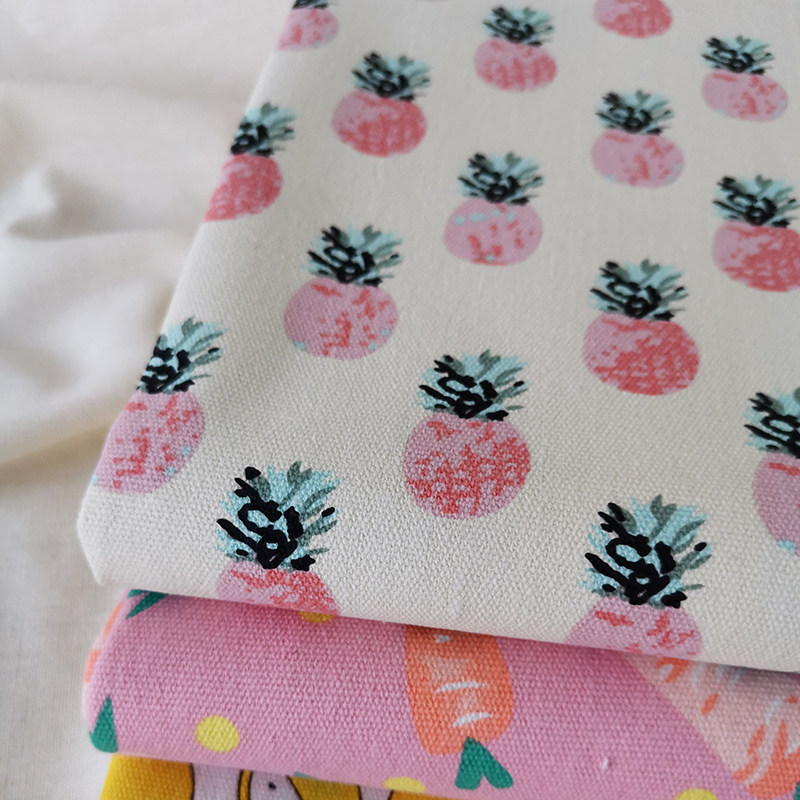 📚 外贸纯棉12安帆布小清新柠檬水果印花渔夫帽背包布料沙发汽车坐垫