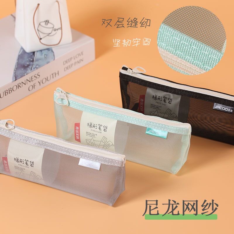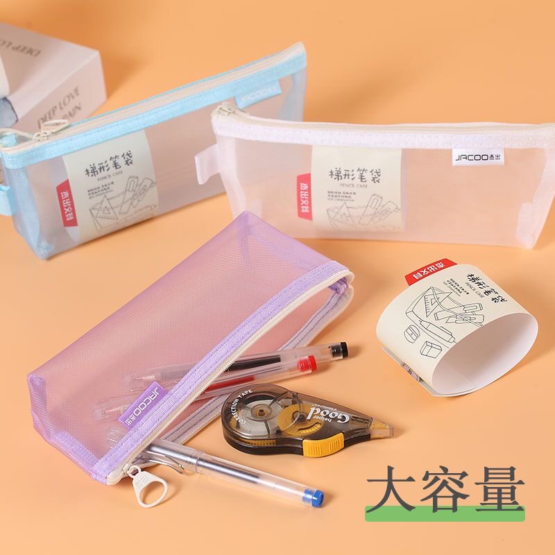 📚 杰出透明梯形笔袋考试用袋简约小清新ins日系糖果色网纱三角形笔袋初中学生用大容量铅笔袋女生收纳袋JC5202