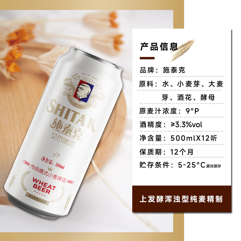 📚 施泰克啤酒9度原浆500ml*12听*2箱浑浊型传统德式啤酒