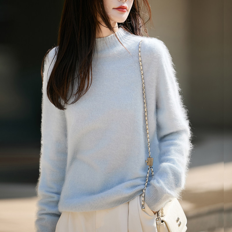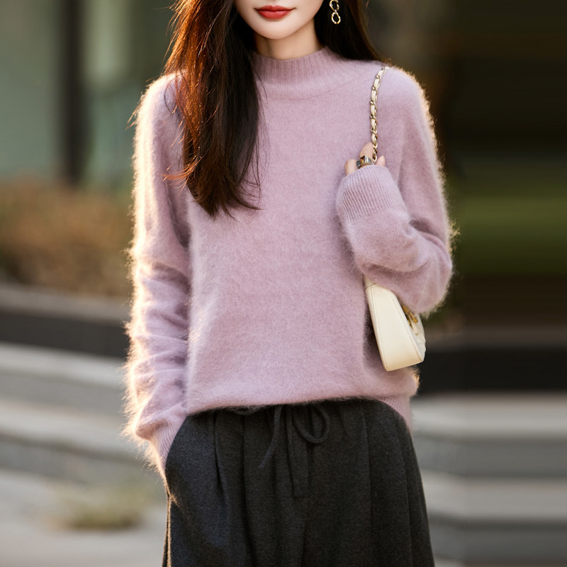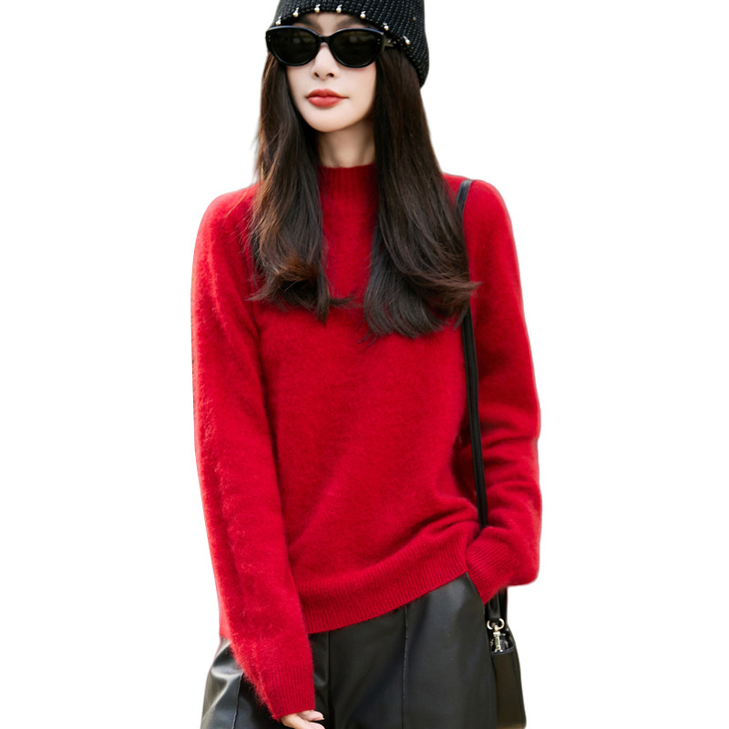 📚 皇室拉绒半高领加厚羊绒衫女重磅加厚羊毛衫宽松休闲针织打底上衣