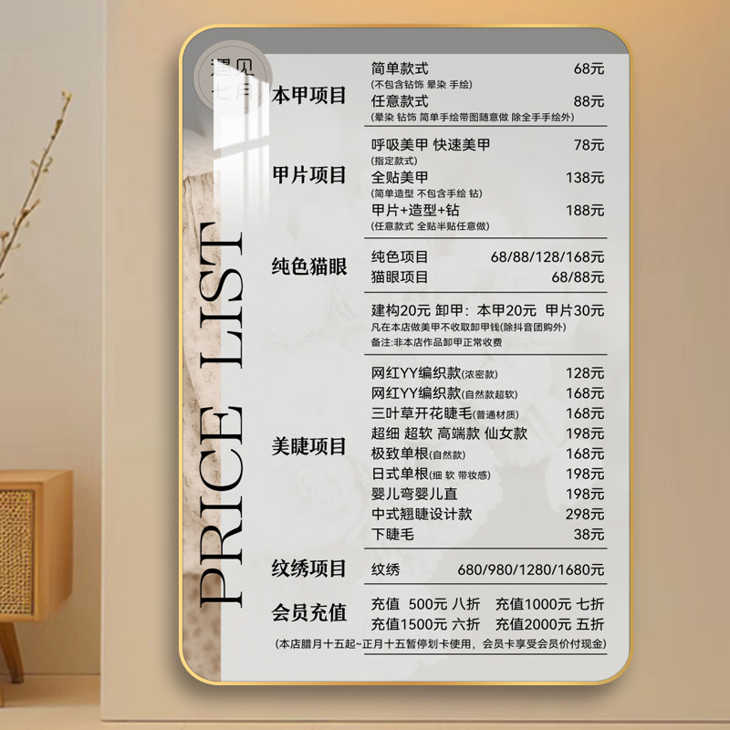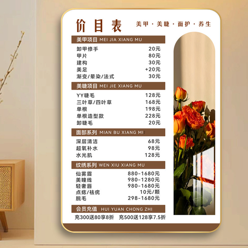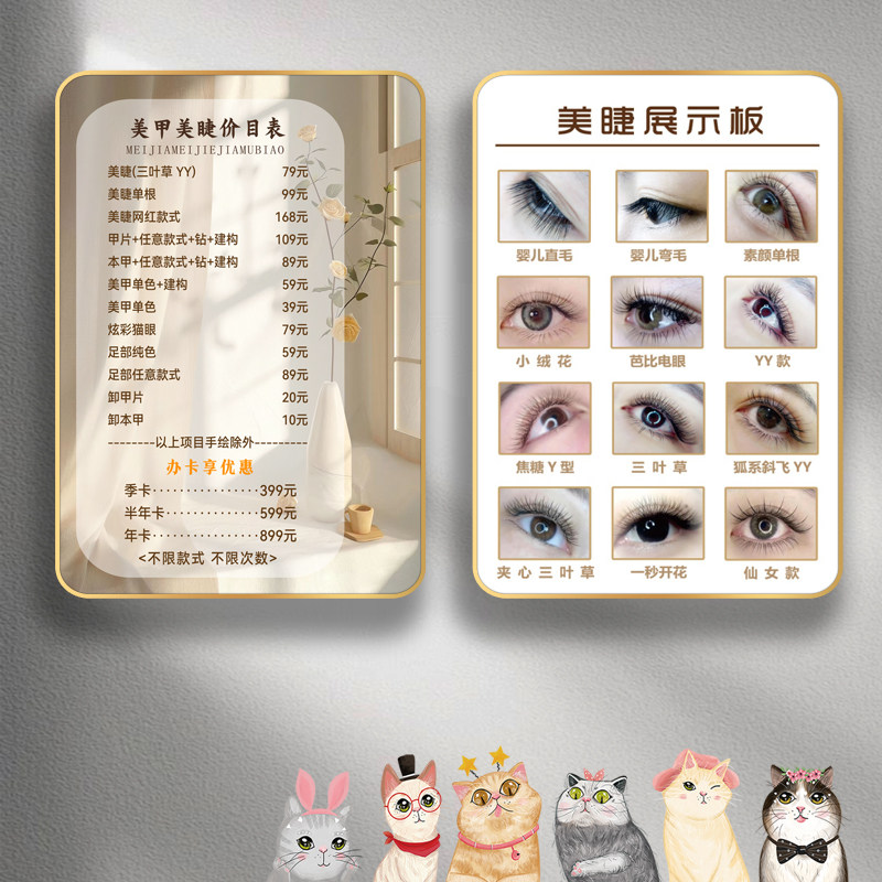📚 美甲美睫价目表定制眉眼唇纹绣价格表脱毛美容化妆价格牌美睫展板