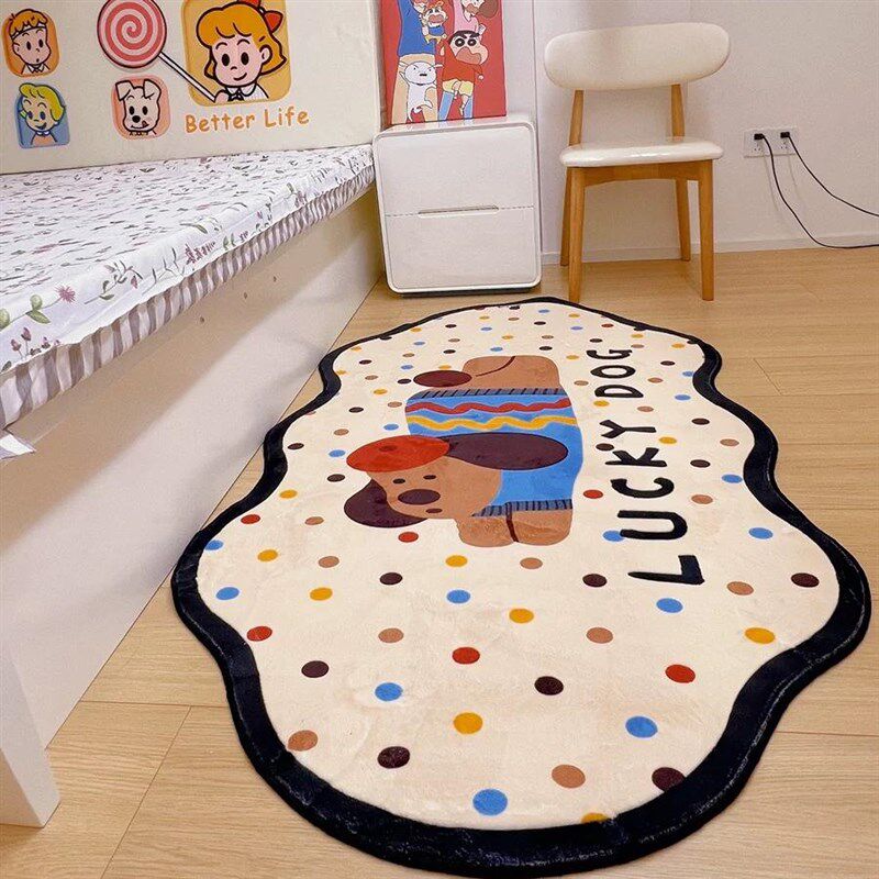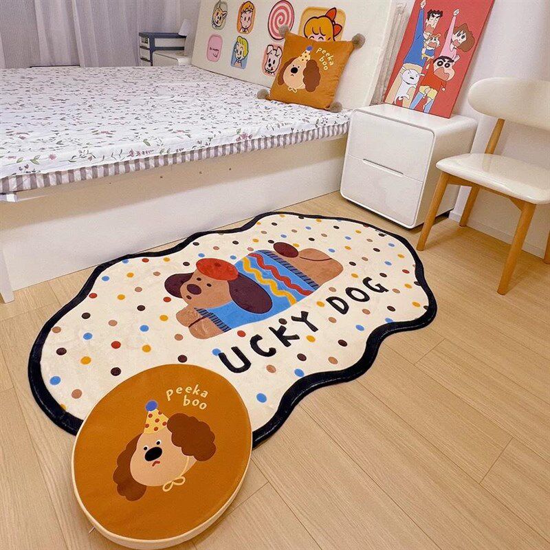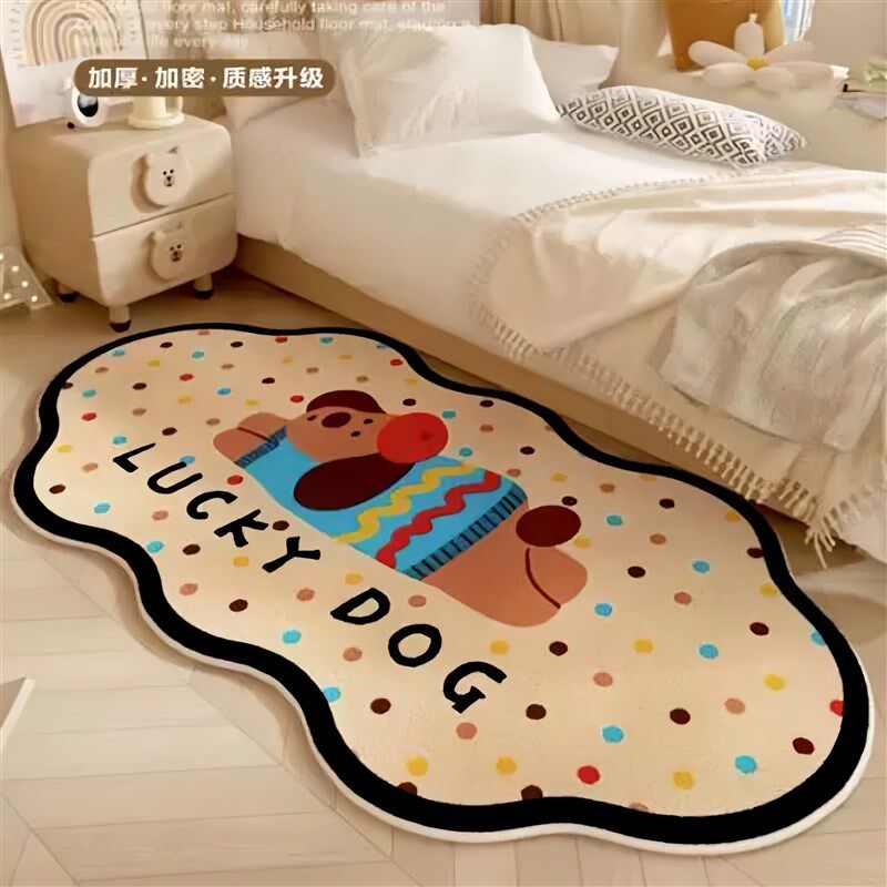 📚 爱卡通小狗床边地毯异形卧室仿羊绒规则防水冬季房间装饰地垫