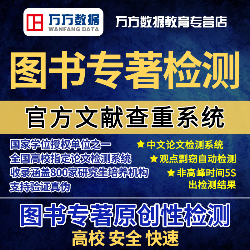 📚 万方数据图书专著查重书籍书稿教材著作硕士博士中文文章文献检测