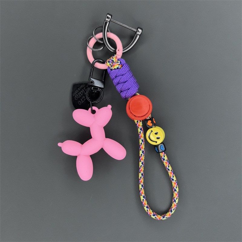 📚 炫彩绳气球狗汽车钥匙扣挂件链环包包挂饰可爱卡通高级感挂绳情侣