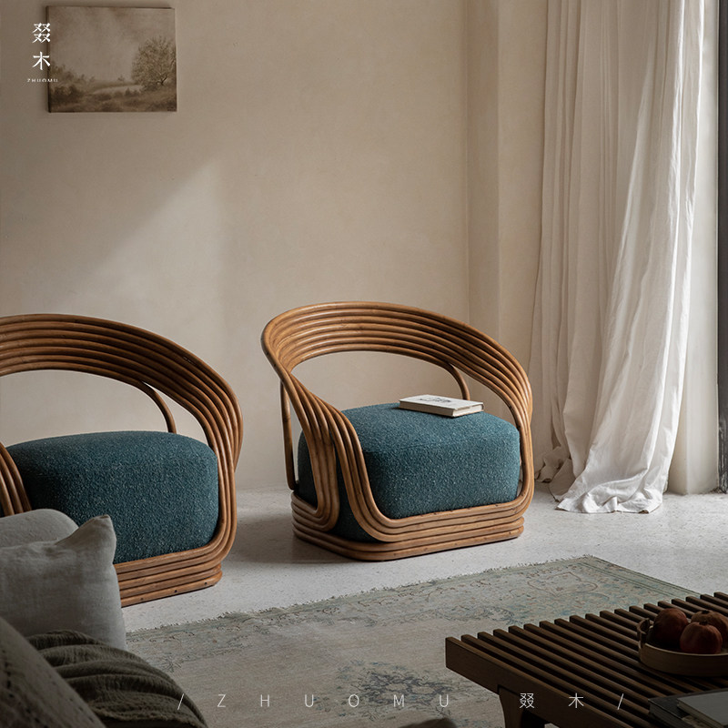 📚 叕木|东南亚藤艺\复古风休闲单人阳台藤编沙发椅民宿酒店会客椅