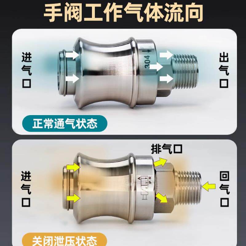 📚 气动不锈钢304手滑阀HSV08手推阀滑动开关高压08-10排气阀MS-22MF