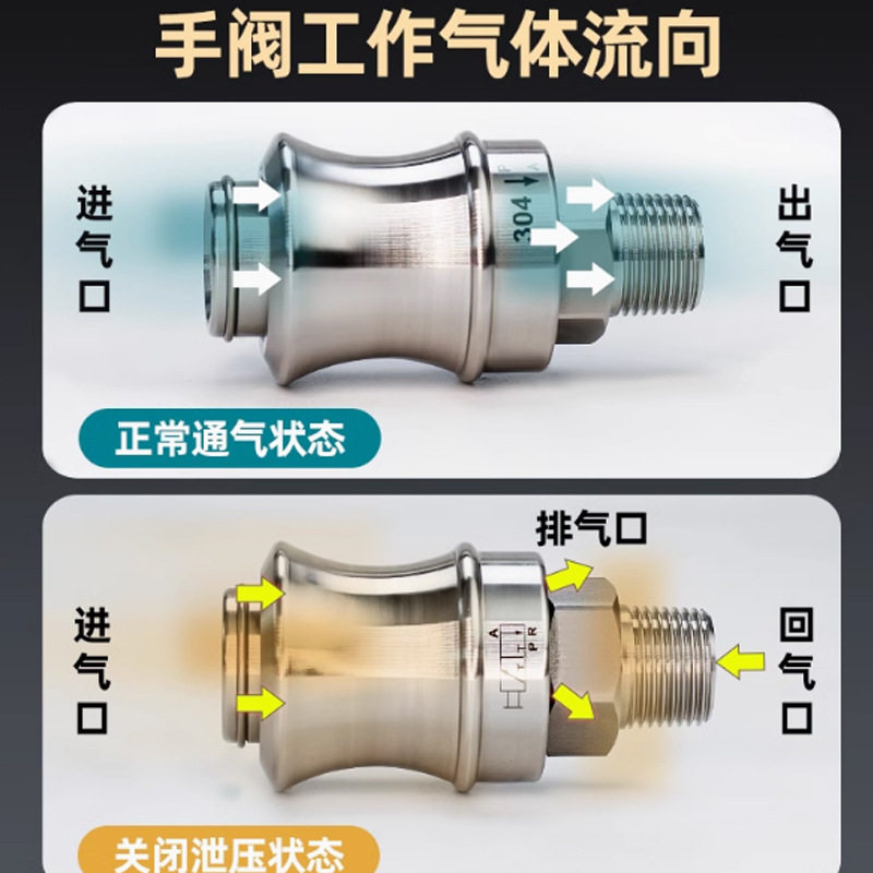 📚 气动不锈钢304手滑阀HSV08手推阀滑动开关高压08-10排气阀咖啡机