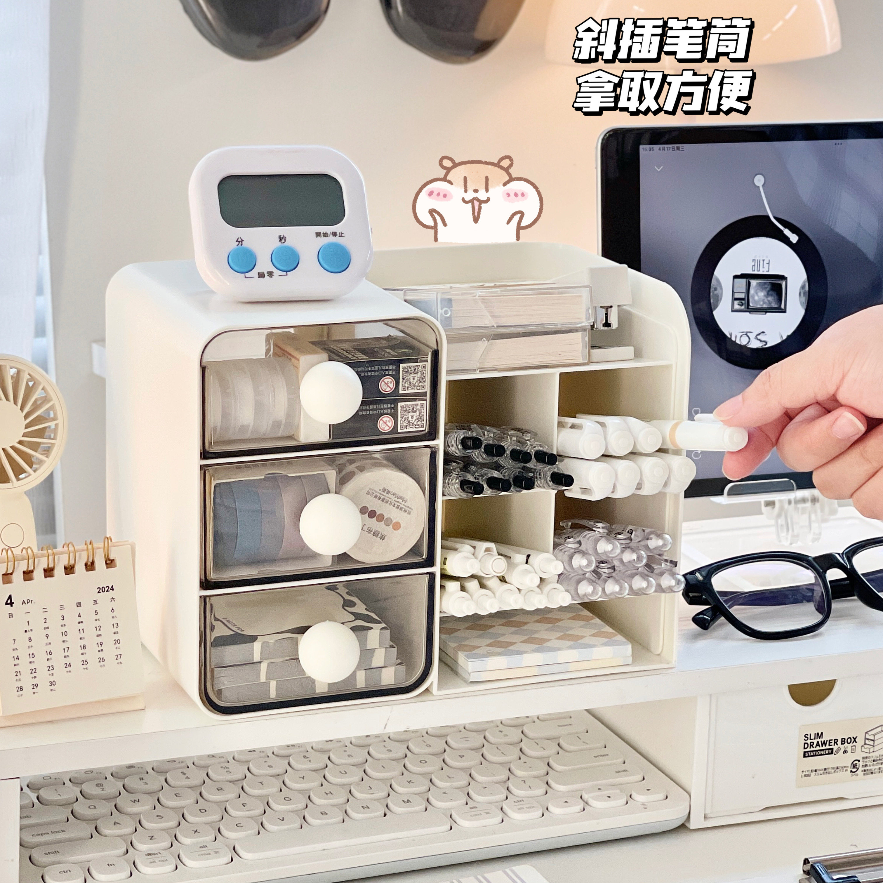 📚 简约桌面收纳盒ins风书桌文具整理置物架学生宿舍办公室书房笔架