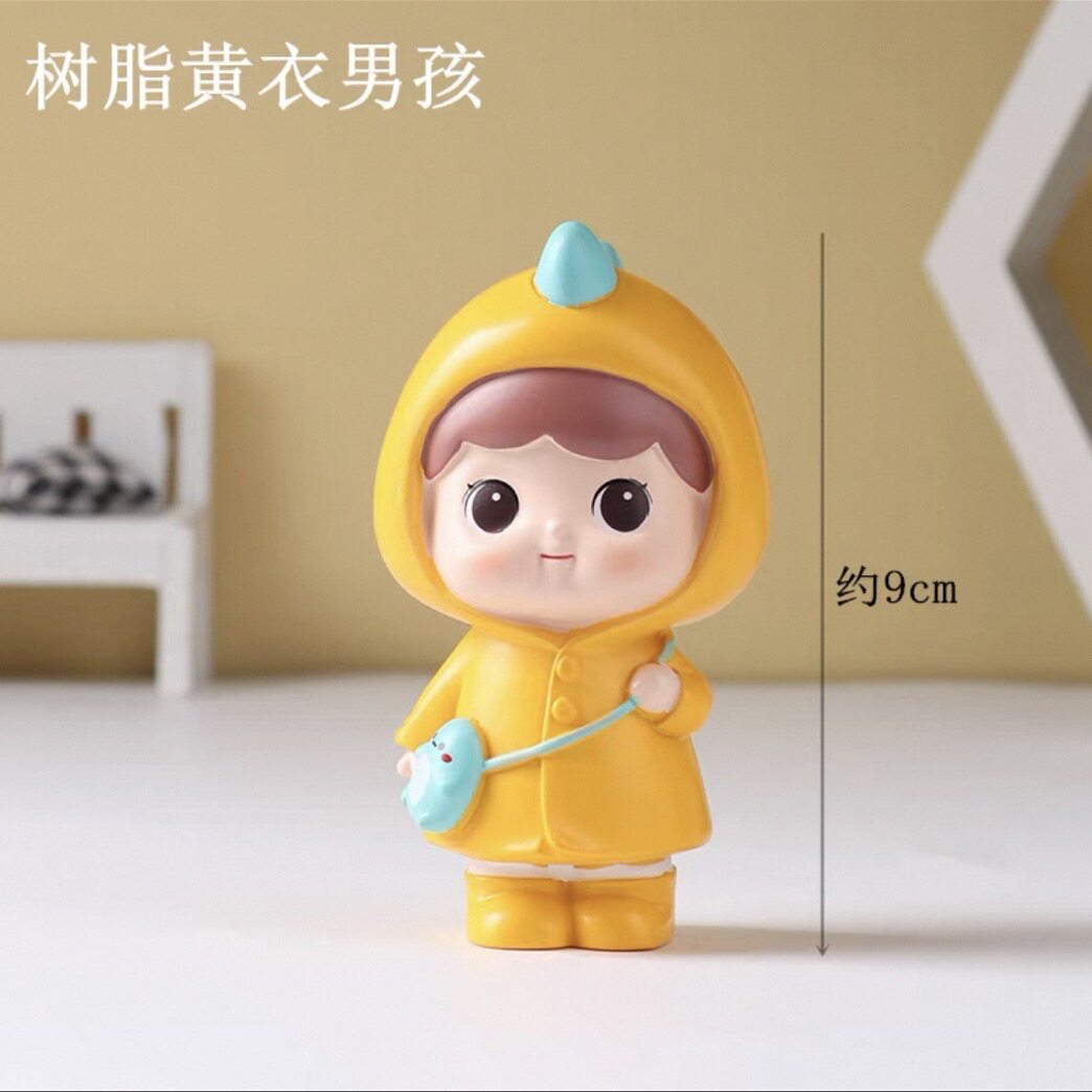 📚 黄衣女孩蛋糕装饰可爱女娃男孩可爱雨衣烘焙云朵黄色帽子蛋糕摆件