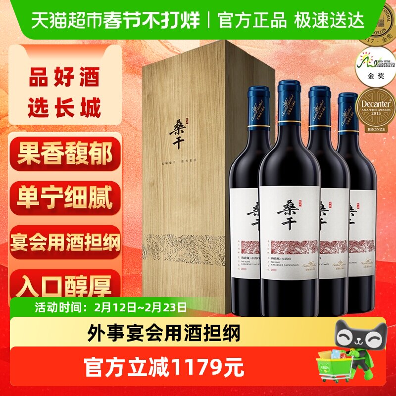 📚 长城干红葡萄酒桑干酒庄梅鹿辄/赤霞珠2015礼盒750ml×4节日送礼