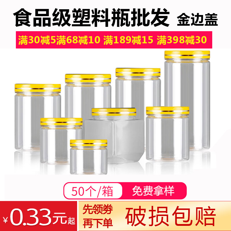 📚 广口瓶塑料瓶透明食品密封罐塑料罐蜂蜜瓶饼干罐铝盖包装罐pet瓶