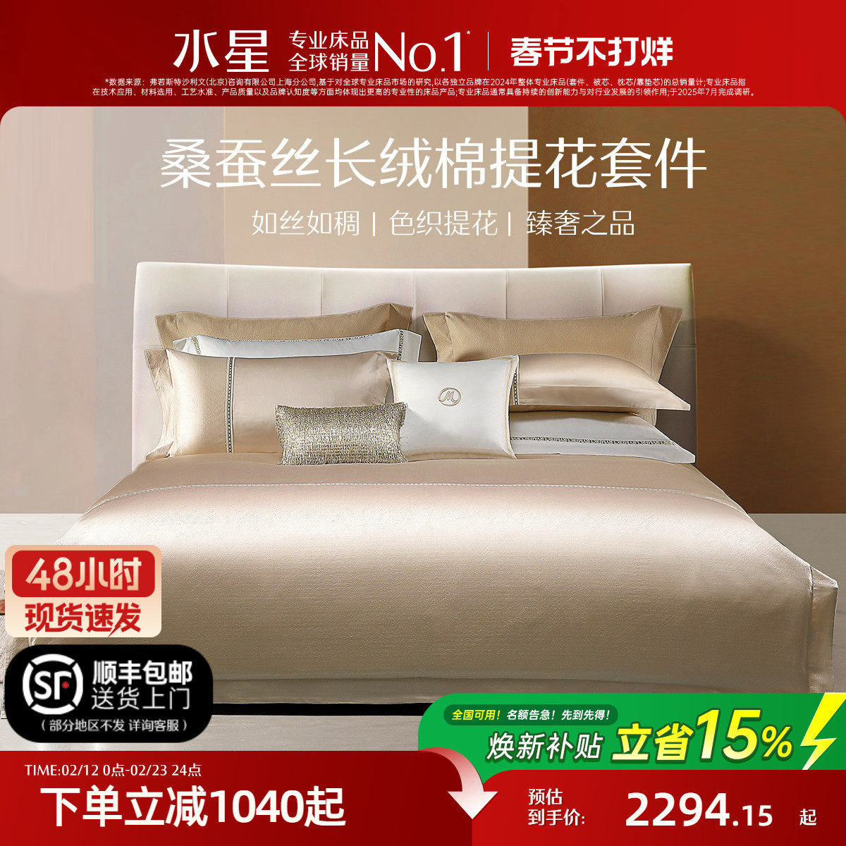 📚 水星家纺桑蚕丝四件套轻奢提花居家套件双人家用床单被套新年送礼