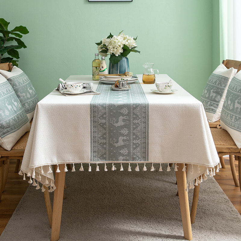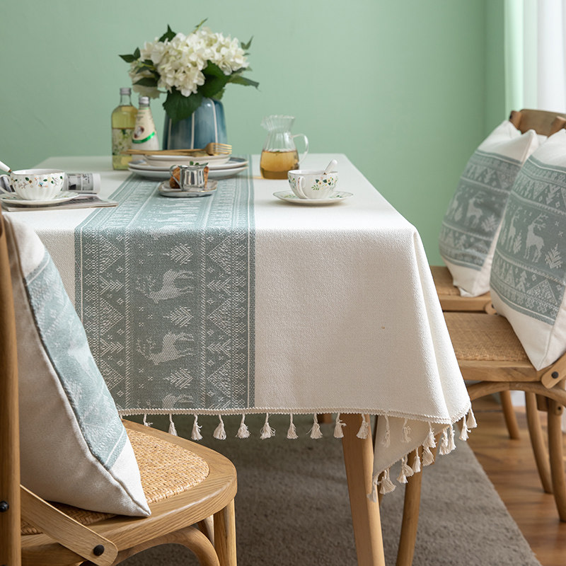 📚 桌布布艺棉麻小清新日系简约北欧风小鹿绿色精致花边学生台布盖布