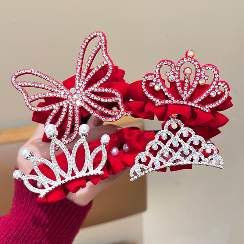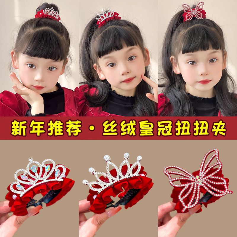 📚 儿童新年皇冠公主头发扣女童盘发马尾扣小女孩丸子头固定神器头饰
