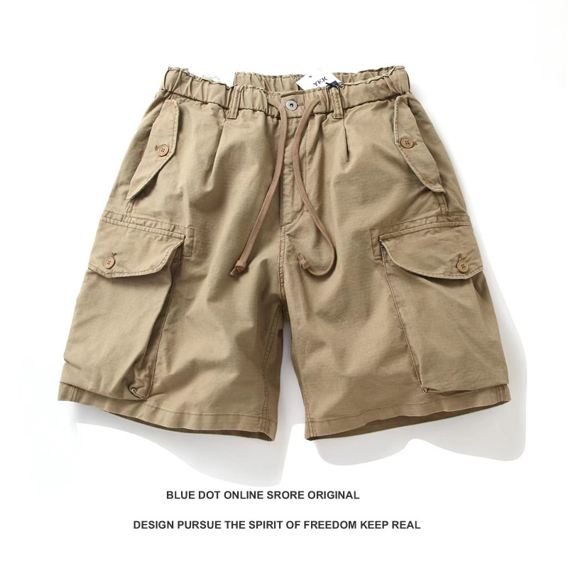 📚 日系复古青年vintage树枝纹迷彩水洗做旧宽版多袋工装五分短裤潮