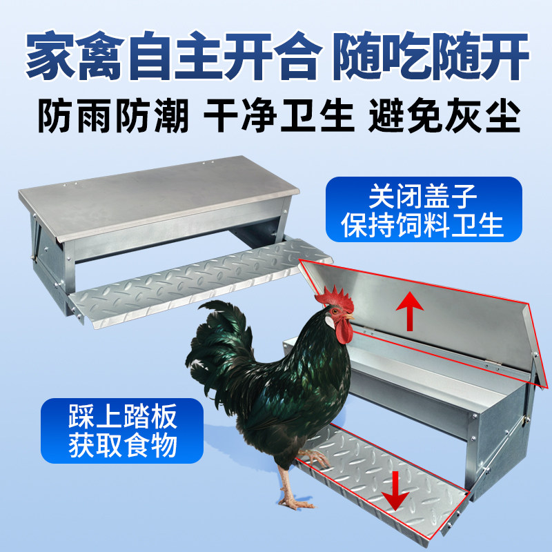 📚 喂鸡神器喂鸡食自动食槽脚踏式新型大容量防老鼠长方形鸡采食料槽