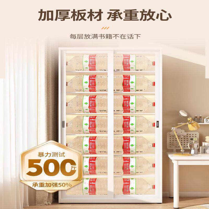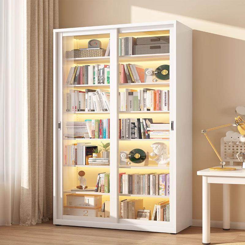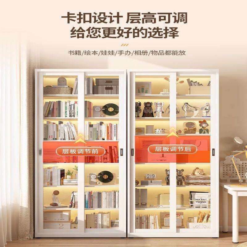 📚 钢制书柜移门推拉玻璃门防尘铁艺收纳展示储物柜带锁落地儿童书架