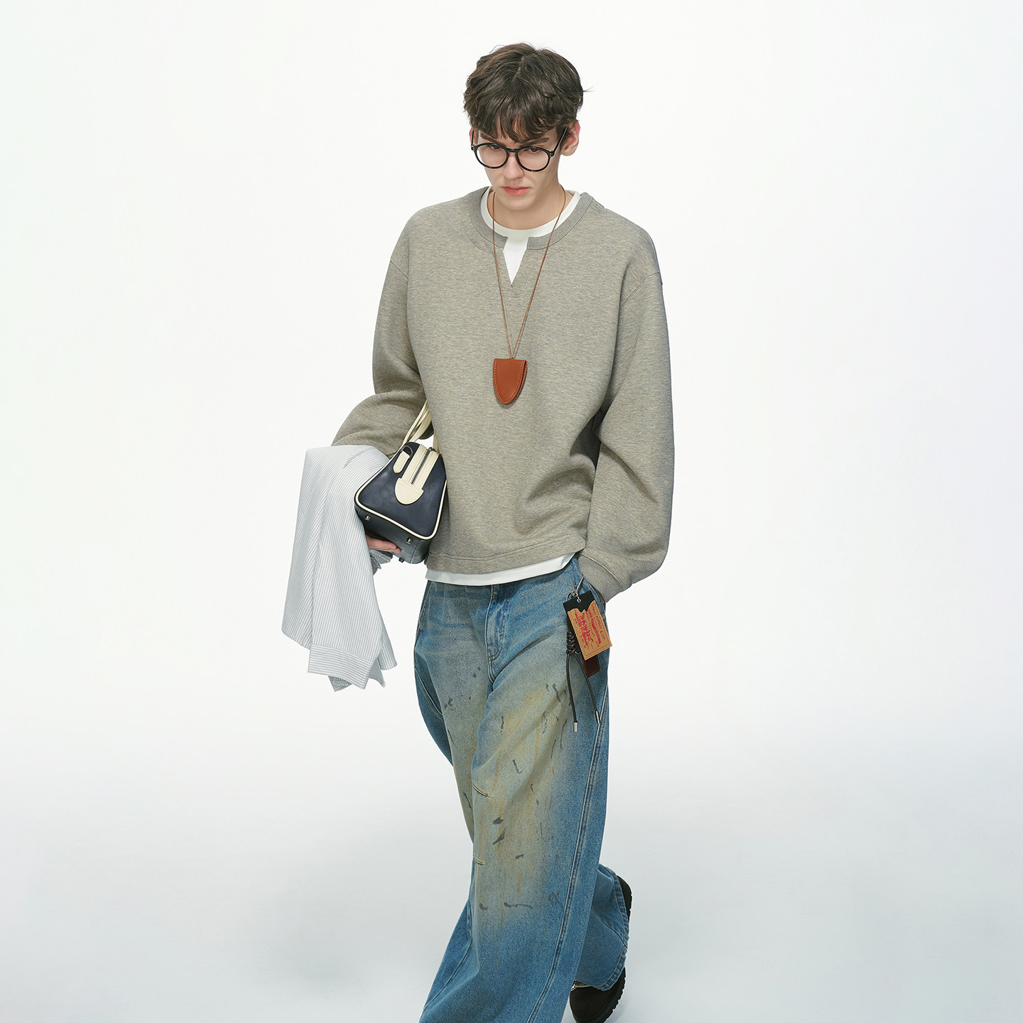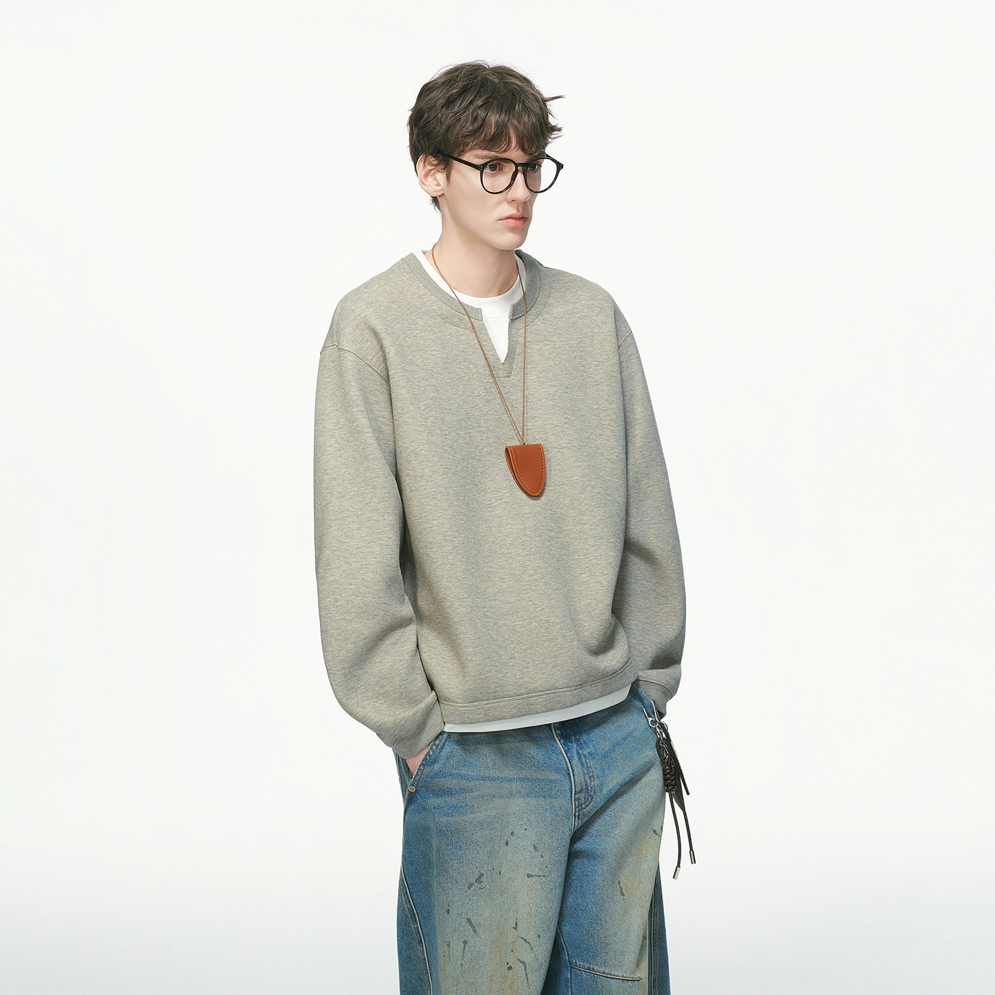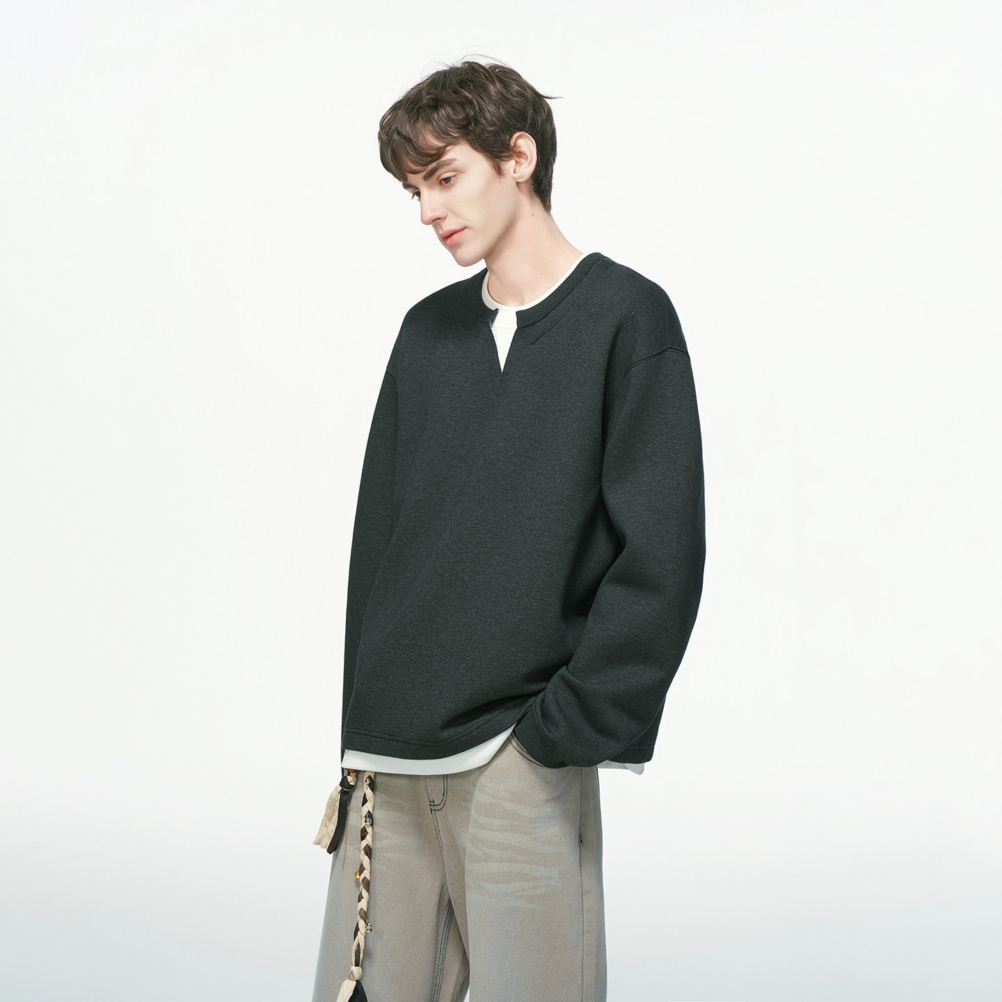 📚 Dream made 美式假两件V领卫衣男秋冬季加绒加厚重磅男生内搭上衣