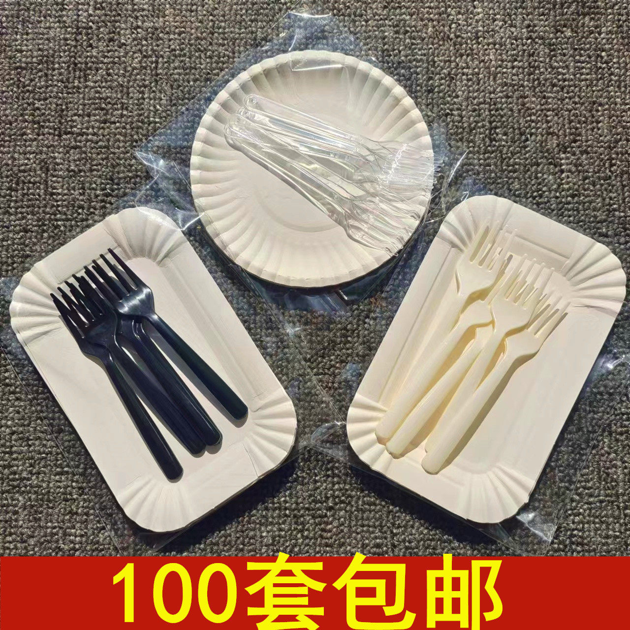 📚 蛋糕刀叉盘一次性蛋糕餐具组合生日餐盘包四合一塑料刀叉盘碟套装