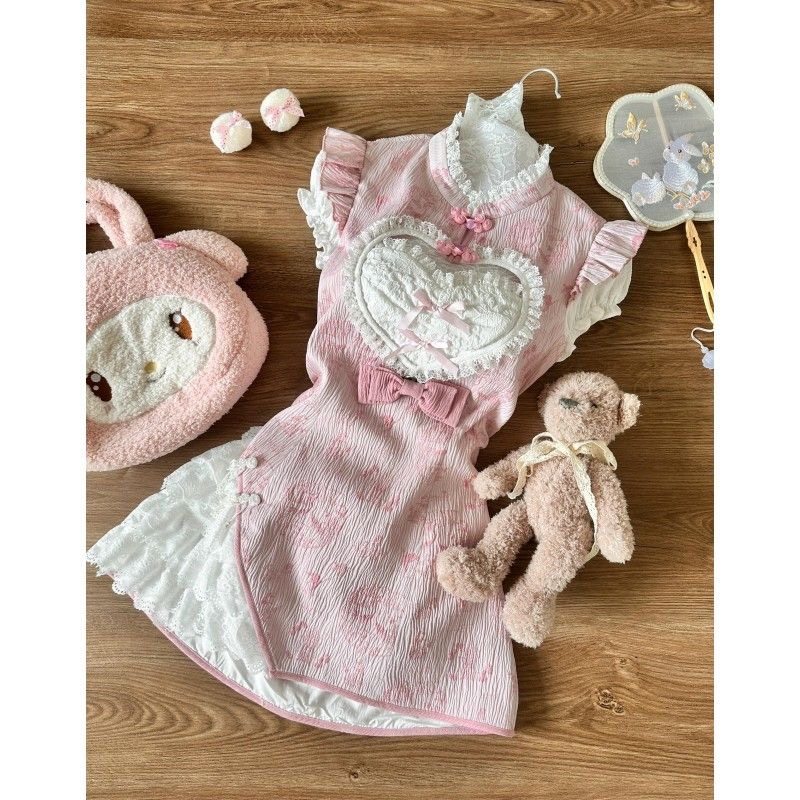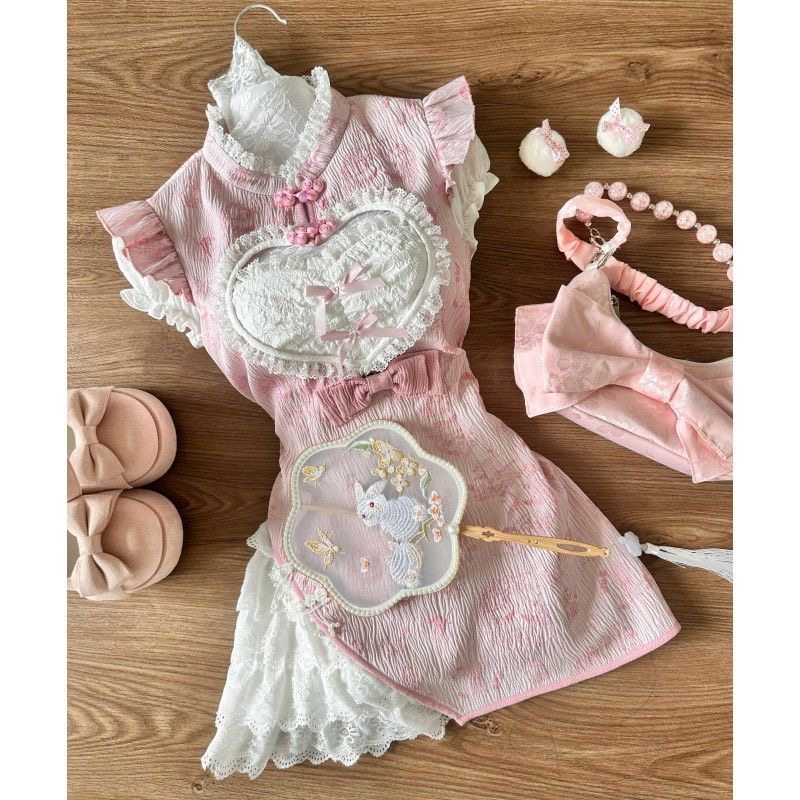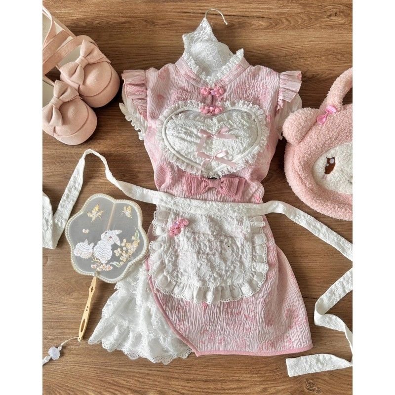 #甜美小厨娘 #旗袍连衣裙 #夏季穿搭 #券后价 #夏日宝藏 #女仆改良版旗袍连衣裙 #粉色修身两件套