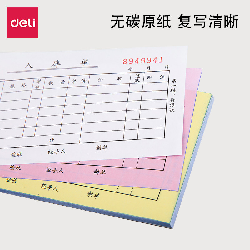 📚 得力收款收据本二联两联三联单栏多栏无碳复写领料出库入库送货单