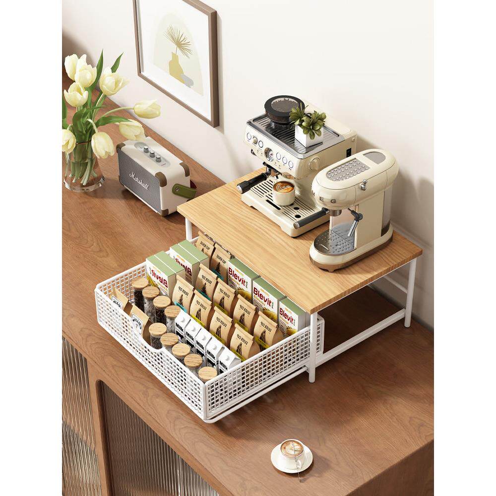 📚 桌面置物架咖啡机抽屉储物架子吧台餐边柜杯架胶囊咖啡茶包收纳盒