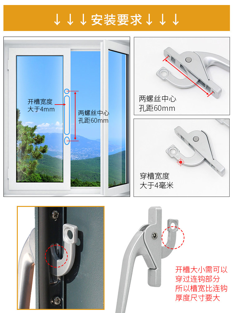 📚 铝合金窗户把手老式平开窗户上下联动把手传动执手锁拉手连杆窗锁
