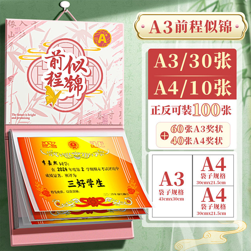 📚 a3a4a5奖状收集册可挂墙展示男孩女孩荣誉证书收纳册学生收藏收纳神放装作品的册子文件夹资料册可挂墙展示器
