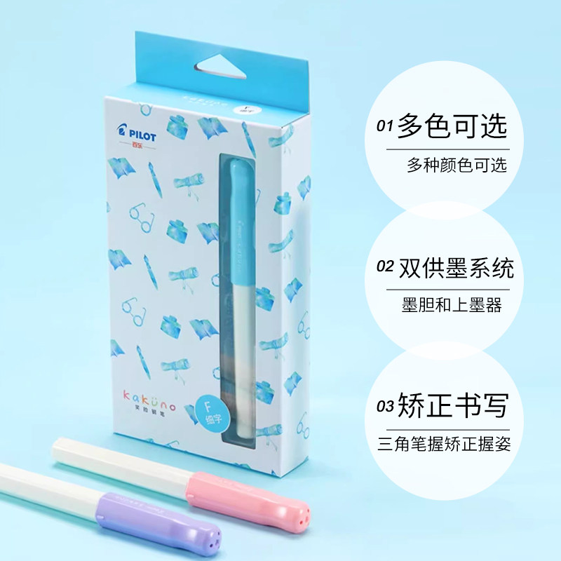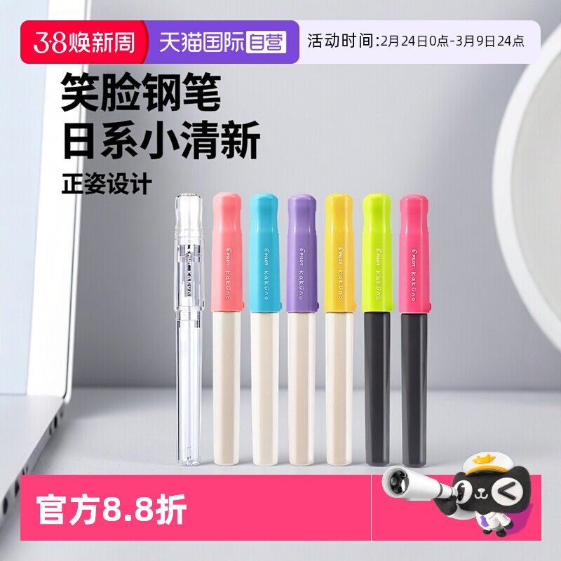 📚 【自营】PILOT百乐kakuno笑脸钢笔可换墨囊透明小清新儿童正姿钢笔男女小学生三年级练字专用万年笔官方正品