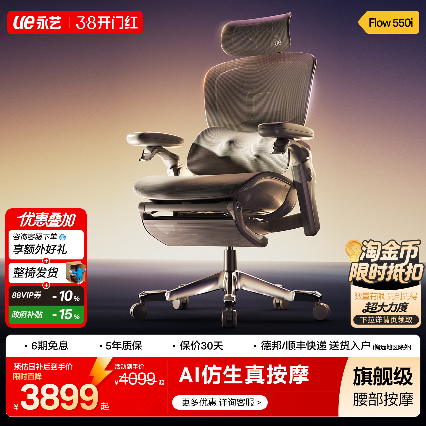 📚 【新品】ue永艺Flow550i 智能椅人体工学椅子家用舒适按摩电脑椅