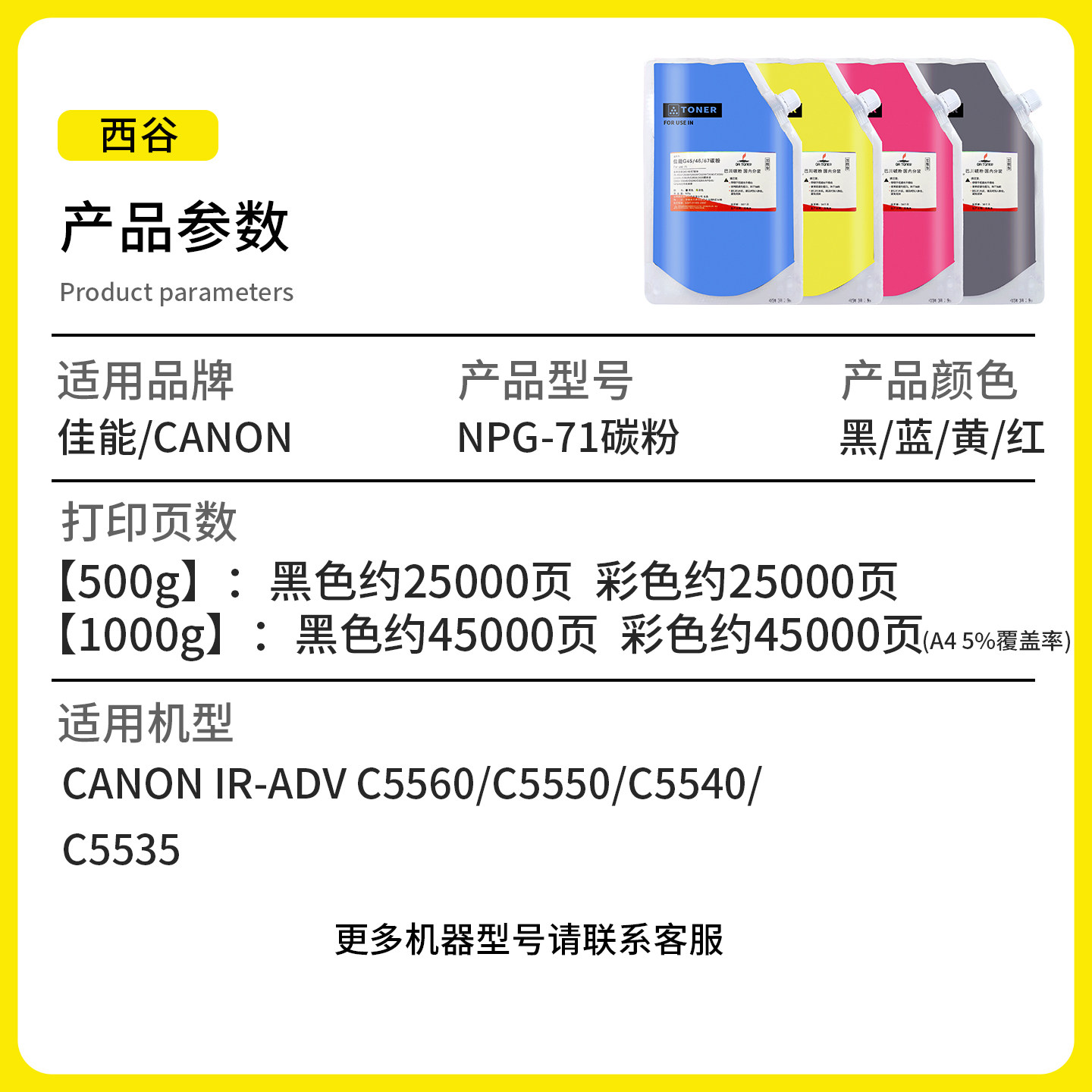 📚 适用于佳能5560碳粉佳能NPG-71墨粉C5560 C5540i C5550i打印机粉盒GPR55佳能5560粉筒佳能c5560复印机彩色g71