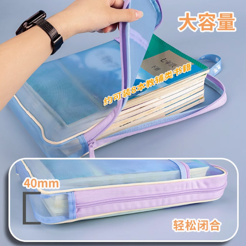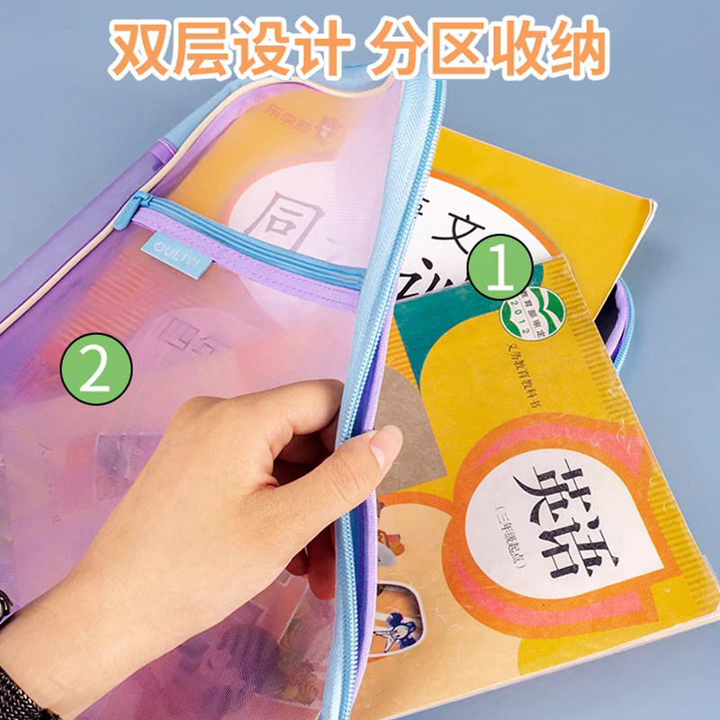 📚 欧力益科目袋学生补习试卷作业整理神器课本分类加宽大容量A4学科袋L型大开口双层收纳袋透明网纱手提拉链袋