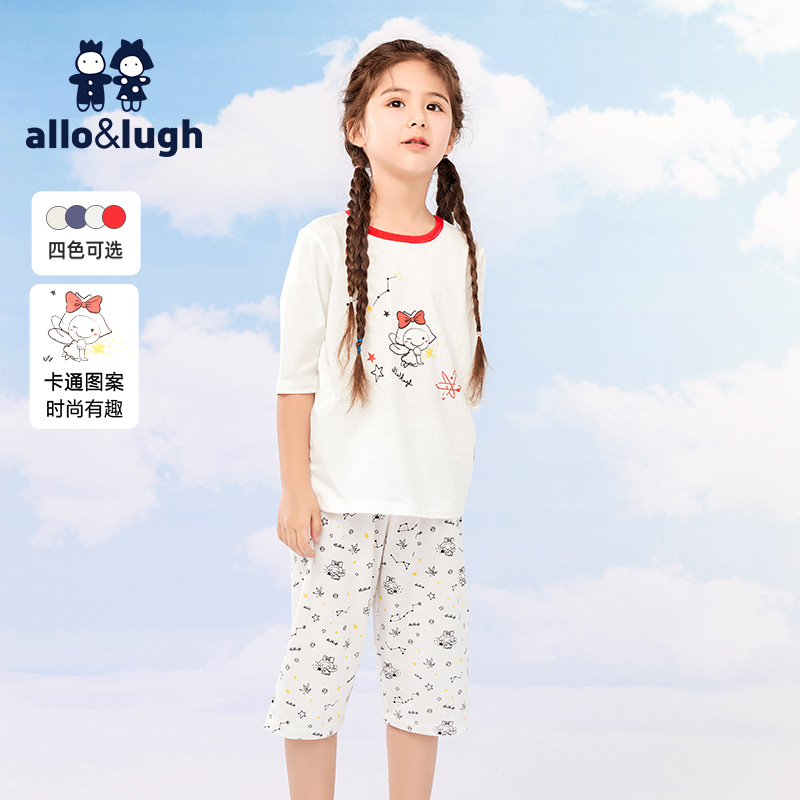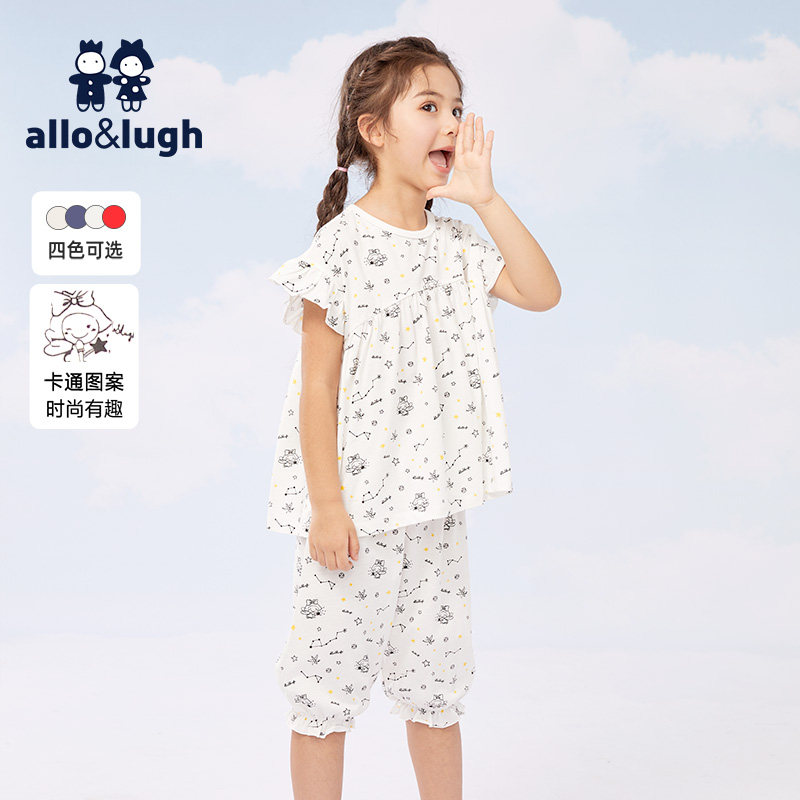 📚 allolugh童装夏季男童女童短款家居服内衣套装抗菌纯棉两件套宽松