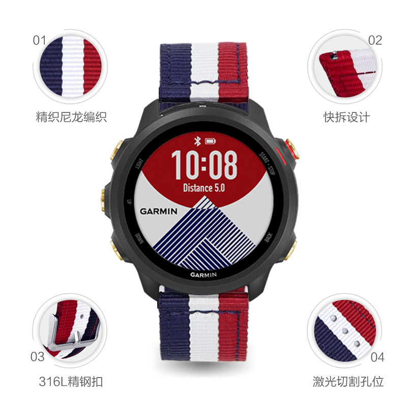 📚 适用佳明Forerunner245/245M帆布尼龙表带F5/5p/6 S60/40 FR935 Forerunner645/Vivoactive3/Venu带精织尼龙